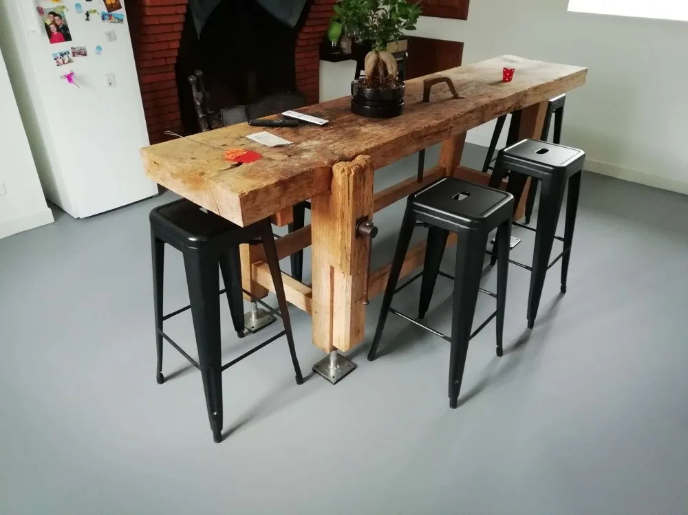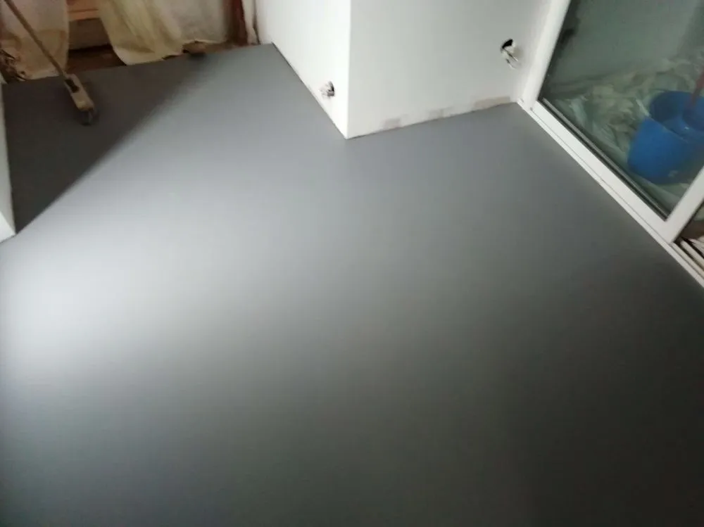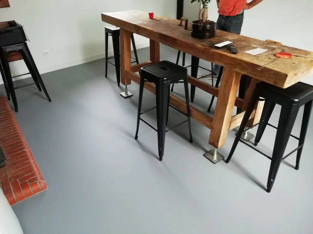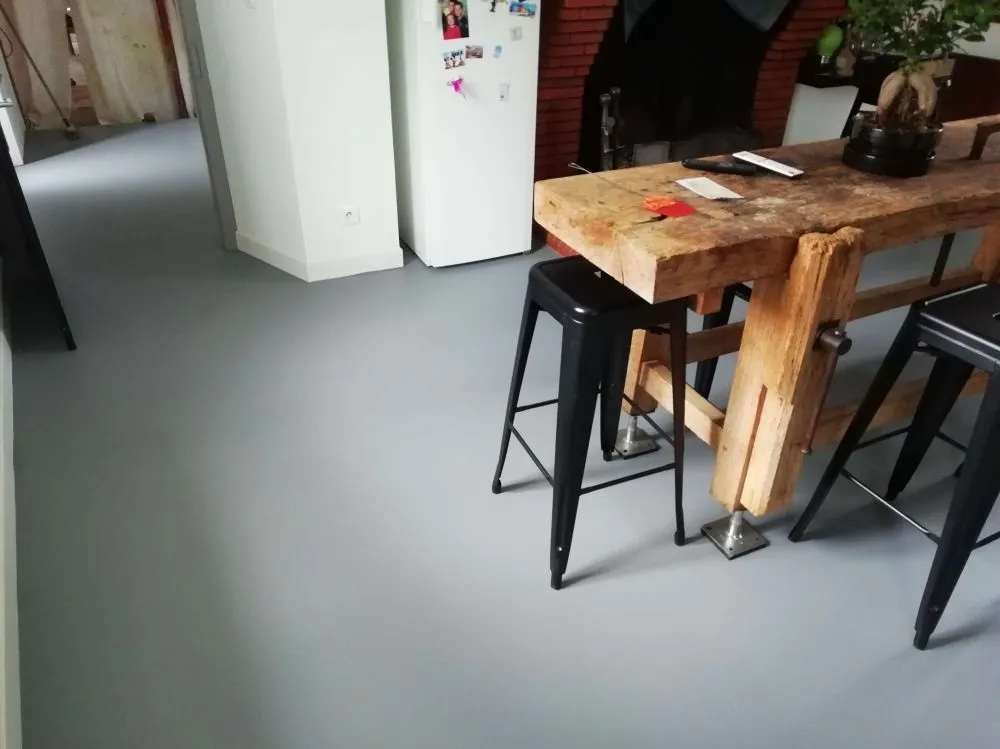 Autolissant gris souris mis en place sur ancien carrelage.