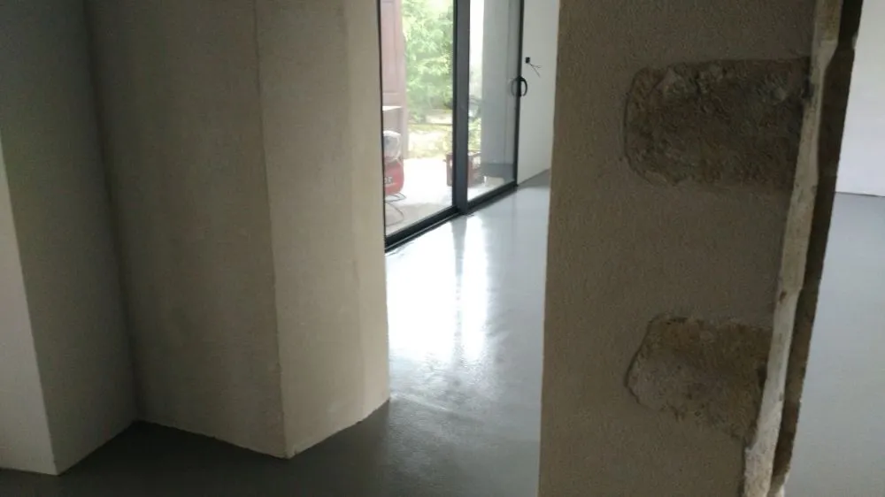 L'équipe Techno Chape est intervenue pour la mise en oeuvre d'une résine de sol grain naturel sur chape liquide et plancher chauffant dans une maison individuelle à Vic-Fezansac - Gers (32).